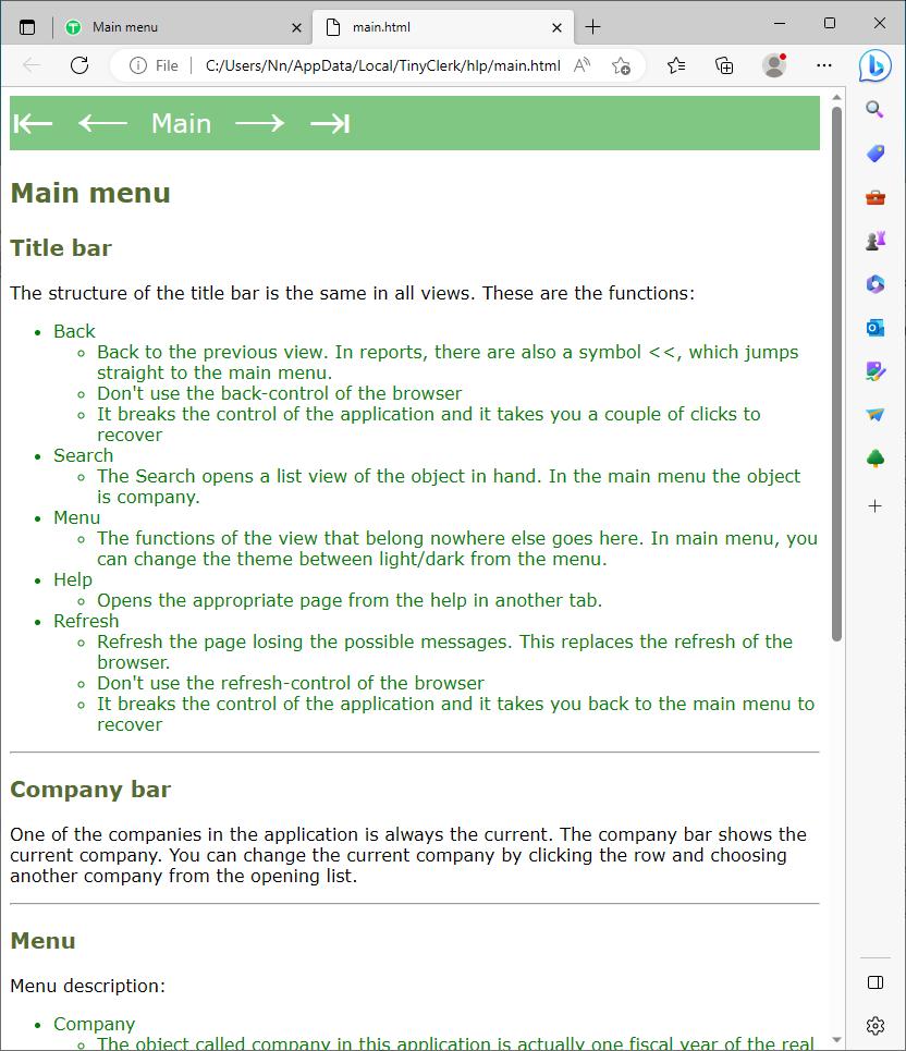 Help pages